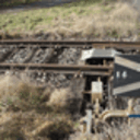 Bilder von Fahrzeugen, die bei Eisenbahnunfällen beschädigt wurden